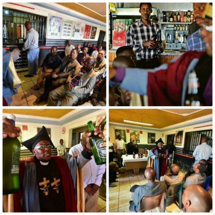 52-year-old Bishop Tsietsi Makiti, who is the founder of the church known as Gabola and the brain behind the idea says that the congregants at the Church have also been given a go-ahead to drink alcohol during church services.